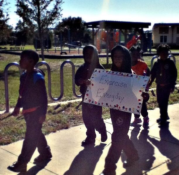 YMCA’s Tiger Academy Charter School hosted its 5th annual “Jingle Bell Walk” event to engage students in making healthy lifestyle choices. The event was coordinated by Tiger Academy’s faculty and North Florida Health Corps AmeriCorps member, Chanel Callin.  The event included all students, faculty, and parent volunteers. Grades Pre-K through 5th were given various Christmas themes (candy canes, Santa, angels, Rudolph, etc.), and students created banners and wore various hats and props to celebrate and show their holiday spirit. Students paraded through the streets nearby the school and completed a 1-mile walk holding their “health awareness” banners and wearing jingle bell necklaces.  Teachers motivated students by singing Christmas carols and spreading healthy messages and merry cheers around the Jacksonville community.