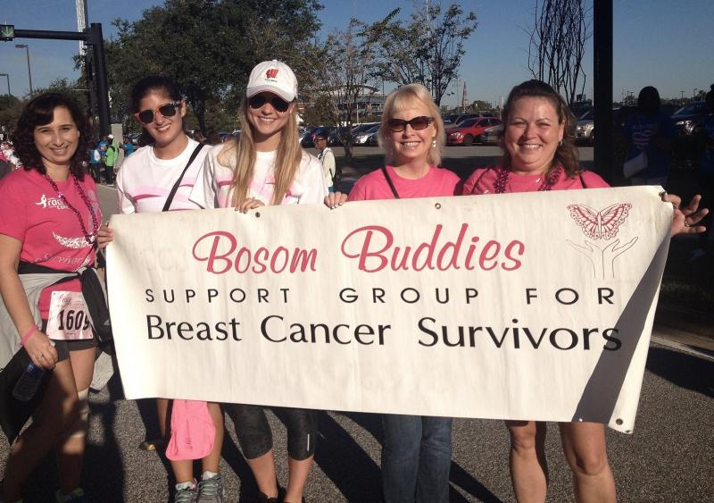 Bosom Buddies holds “Caring and Sharing” support group meetings two to three times a month. Members are encouraged to share where they are in their cancer journeys, and the group welcomes newly diagnosed women into the sisterhood of survivors, sharing stories of hope and resiliency in the face of breast cancer.