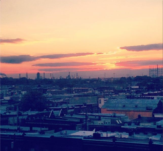 If you look out the window of Health Center 2’s Patient Assistance Program office late in the afternoon, you can catch a beautiful view of the sun setting over South Philadelphia. The sky is streaked red, orange, and pink, and smokestacks that emit gray plumes into the air pierce the horizon.