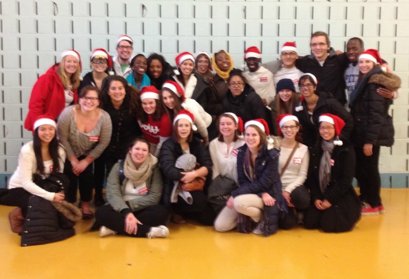 In the spirit of giving, Philadelphia Health Corps chose the 20th Annual Rubye’s Kids Holiday Party as their December group service project. Our members met bright and early at Girard College to put the finishing touches on decorations and setup the many, many activities the children would see while waiting for their turn in Toyland and their visit with Santa. Volunteers at the event staffed fun activities like face-painting and temporary tattoos; and gave out much needed school supplies, hats and gloves. The bravest of the volunteers took on the important role of chaperoning a group of 5 children throughout the day. Chaperones were tasked with making sure each child got to visit the 15 activity stations and if possible, squeeze in a dance with Spiderman, Spongebob, and the Phillie Phanatic.