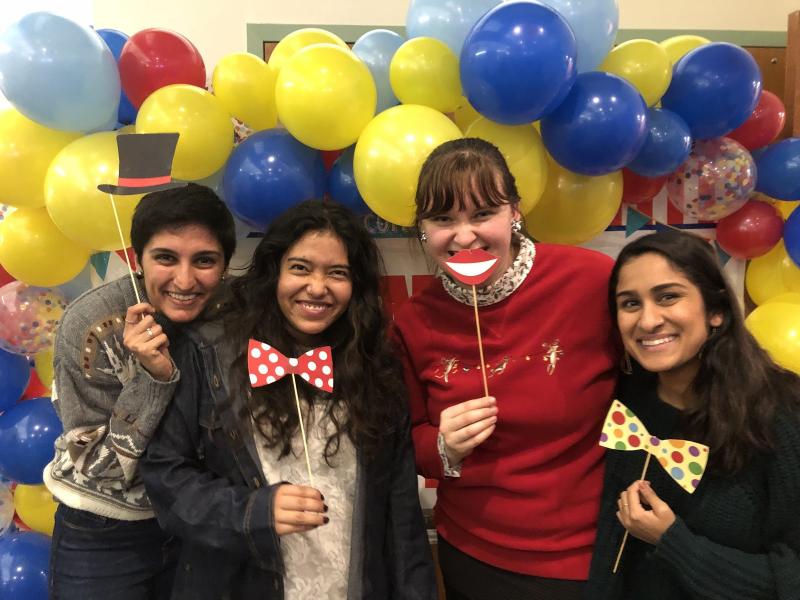 Image Description: The 4 NSC Health team members from National Health Corps, Jesuit Volunteer Corps, Mercy Volunteer Corps smiling, holding props for a goofy team picture
